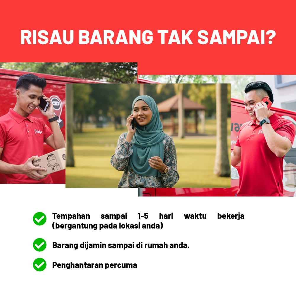 ✔ Penghantaran COD melalui Ninjavan ✔ Bayar kepada posmen waktu terima parcel/barang ✔ Dijangka sampai sekitar 1-3 hari